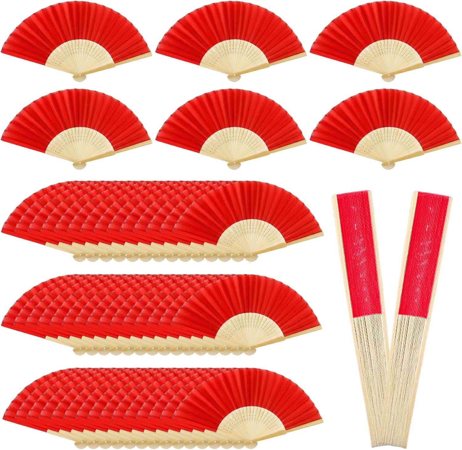 Description: Experience the elegance of traditional Chinese craftsmanship with our beautiful bamboo folding fan. This exquisite hand fan features genuine bamboo construction with smooth blue silk fabric, creating an authentic oriental accessory that combines functionality with artistic beauty. The fan folds compactly to 8.3 inches for easy portability and storage, while unfolding to a generous 15-inch diameter to provide effective air circulation. Perfect as wedding favors for guests, cultural event souvenirs, or decorative accessories, this fan adds a touch of classic Chinese elegance to any occasion. The natural bamboo frame ensures lightweight durability, while the silk fabric surface provides a smooth, luxurious texture. Whether used for practical cooling purposes, as a photo prop, or as a decorative elements, this traditional folding fan brings timeless beauty and cultural charm to your special events and daily life. Features:. Folding Fan. -Color: Blue. -Material: Bamboo. -Size: Fold 21cm/8.3inch. Unfold diameter 38cm/15.0inch. Note:Manual measurement, please allow slight errors on size.The colors may exist slight difference due to different screens. Package Including 50Pcs Folding Fan