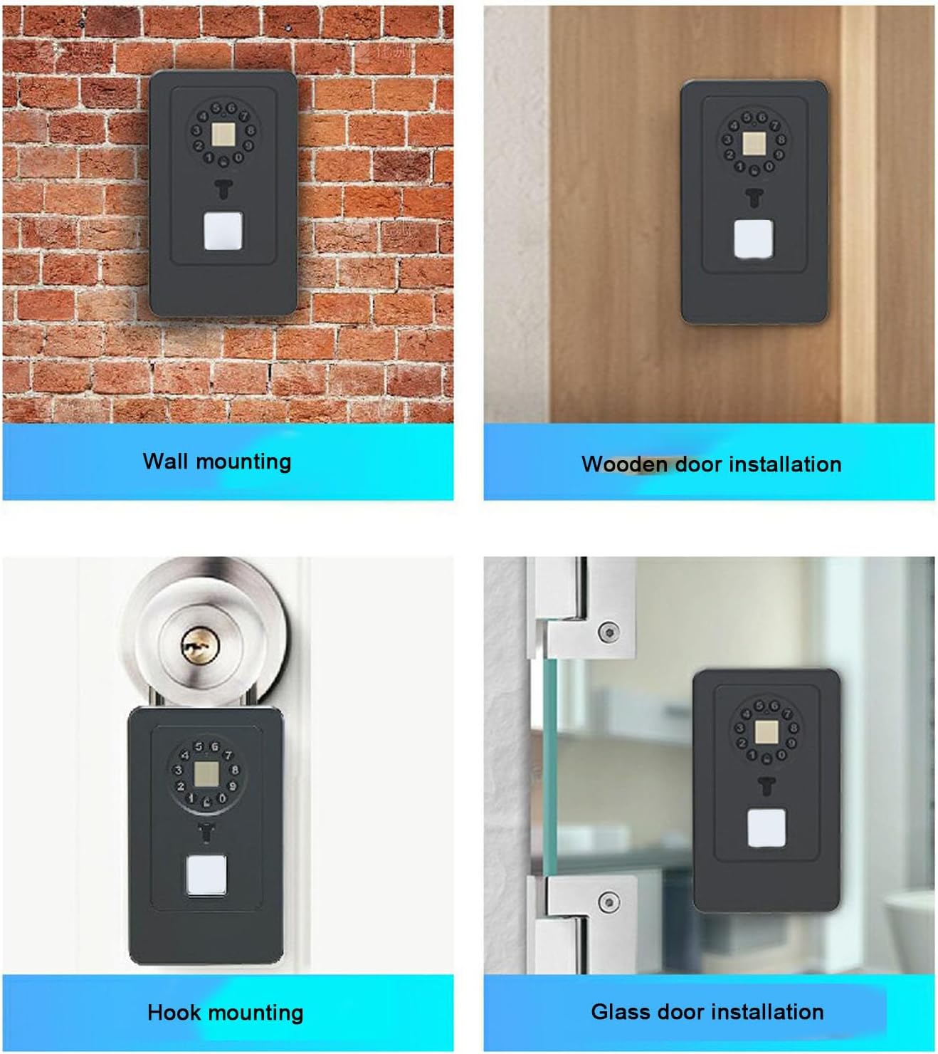 [MULTIPLE UNLOCKING METHODS] Experience the convenience with six advanced unlocking options including fingerprint recognition mobile Bluetooth connectivity password entry remote authorization password sharing and mini program unlocking. This versatile key lock box is designed to cater to all your security needs ensuring quick and easy access anytime anywhere.[IP54 DESIGN] Built to withstand harsh outdoor conditions this lock box features an IP54 rating making it to rain dust and extreme temperatures. Whether mounted on a wall or placed in a garden it remains fully functional and reliable in any weather environment.[LONG LASTING BATTERY LIFE] Powered by 3 AAA batteries (not included) this smart key lock box offers an impressive 360 day standby time and supports over 5000 continuous unlocks. The included USB port ensures emergency power access so you're never locked out even during low battery situations.[ACCESS HISTORY TRACKING] Keep track of all access events with the built in history tracking feature. The lock box stores up to 108 fingerprint records and 1000 software unlocking logs providing you with detailed insights into who accessed your keys and when enhancing security and peace of mind.[PREMIUM DURABLE MATERIAL] Constructed from ABS and 303 stainless steel lock beams this key lock box delivers exceptional durability and resistance to tampering. It can withstand hammering sawing and prying attempts ensuring your keys are always safe and secure.Spec:Item Type: Smart Key Lock BoxMaterial: ABS, 303 stainless steelBattery: AAA battery x 3 (not included)Unlock Method: Fingerprint, mobile phone Bluetooth, password, remote authorization, share password, appletPackage List:1 x Key Lock Box1 x Lock Beam1 x USB Cable1 x Long Screw1 x Nut2 x Large Washer2 x Small Washer1 x Washer2 x Lock Beam Screw3 x Mounting Screw3 x Expansion