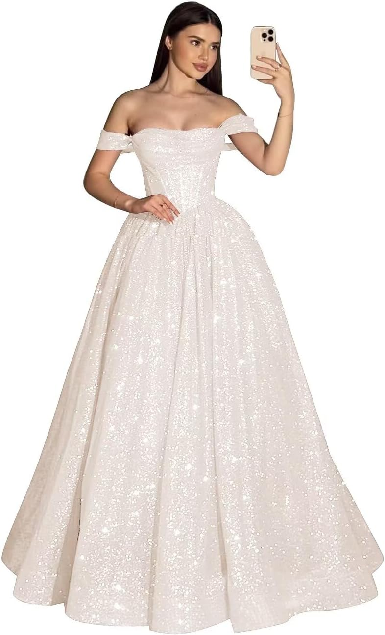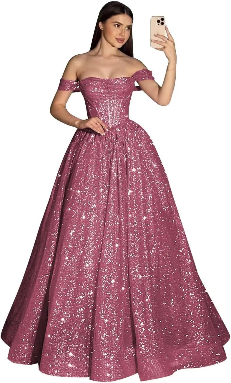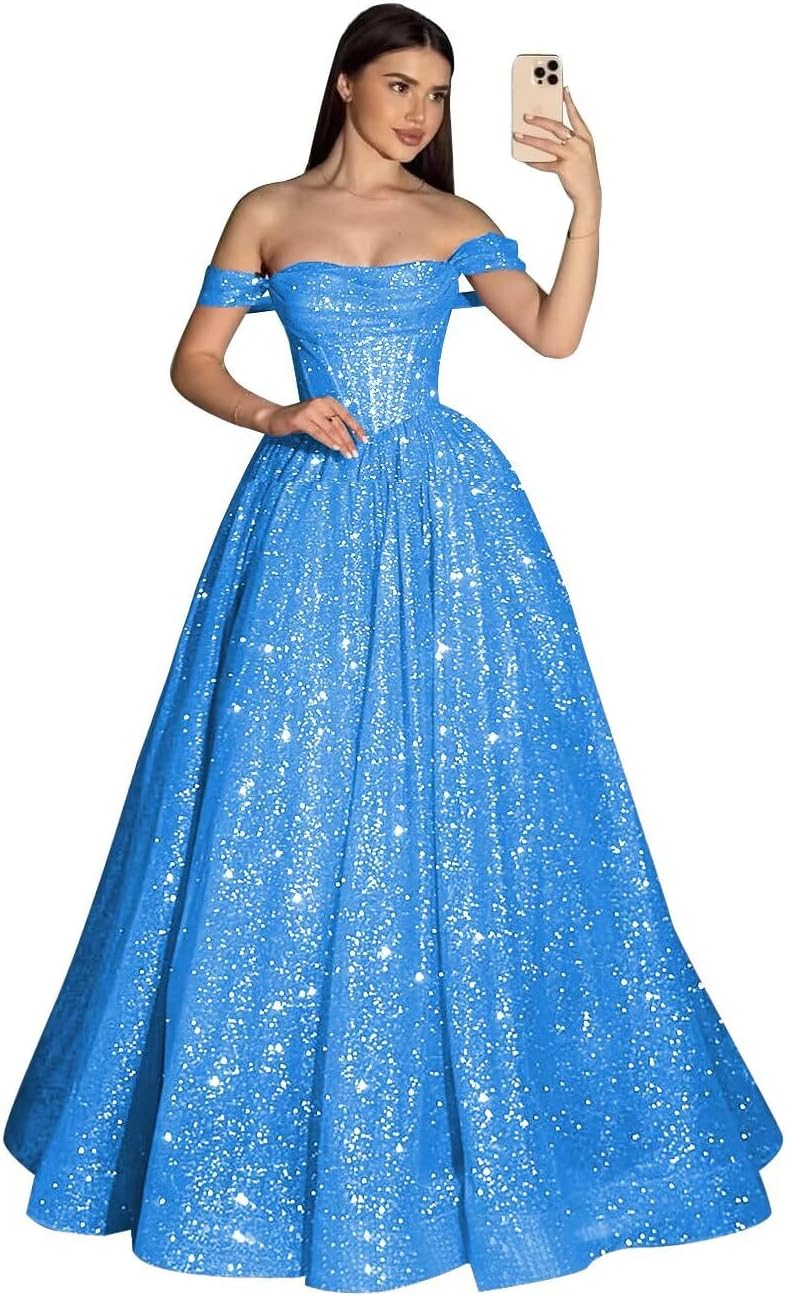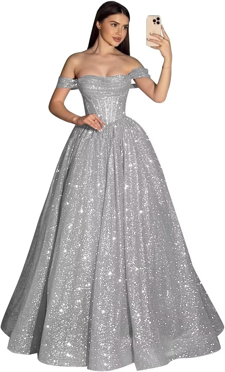 Welcome to our store: Sparkly Sequin Prom Dresses 2026 Long Off Shoulder Tulle Formal Gown Corset A Line Evening Ball Gown How to Customize Dress Sizes: Please sent us measurements as below: A.Full Bust _____ inch or ___ cm. B.Waist _____ inch or ___ cm. C.Hips _____ inch or ___ cm. D.Height _____inch or ___ cm. E.Hollow (collarbone)to floor____ inch or ___ cm. F.Shoulder to Shoulder ____ inch or ___ cm. G.The heel of your shoes _____inch or ___ cm. H.The date you need the dress____. 1.The real color of the item may be slightly different from the pictures shown on website caused by many factors such as brightness of your monitor and light brightness. 2.Due to manual measurement, please allow for slight deviations in the measurement data.