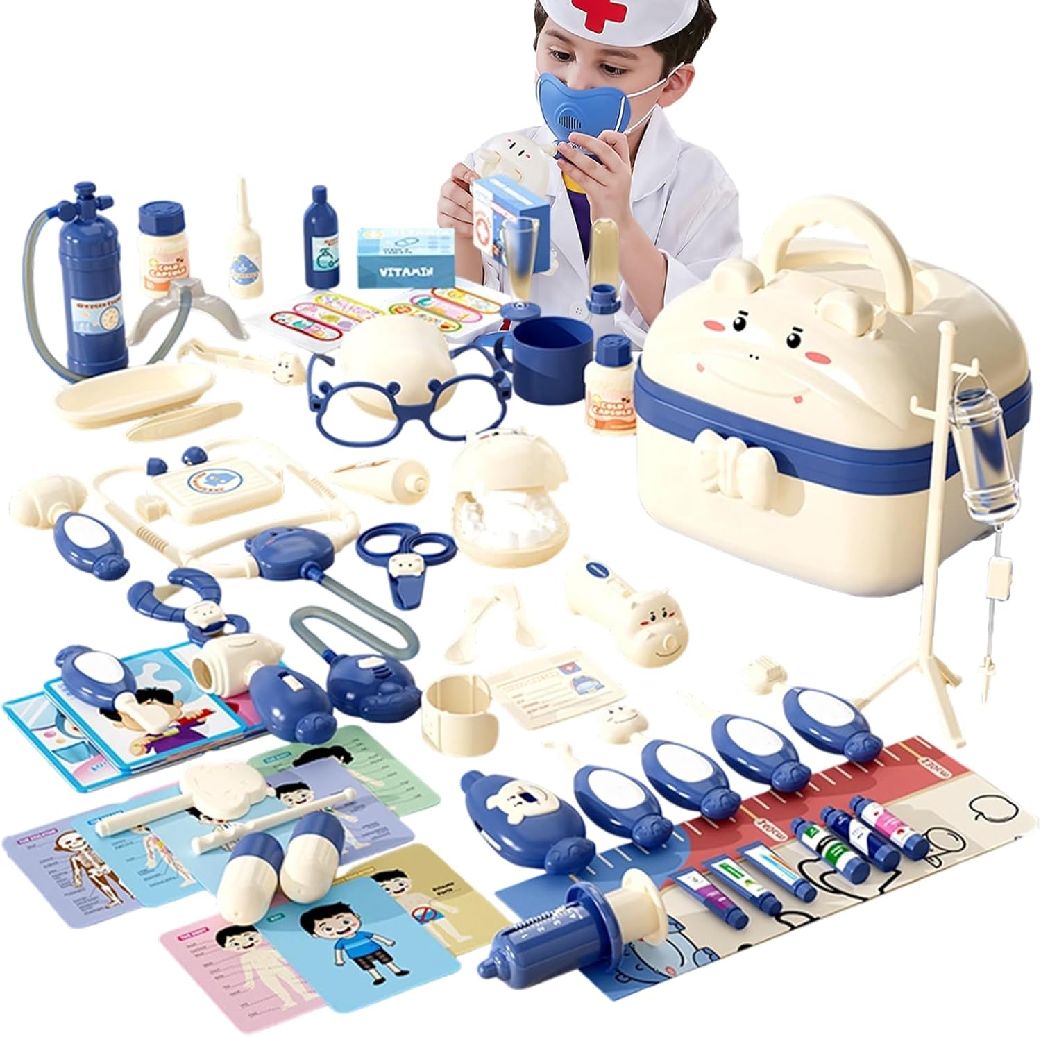Our multifunctional pretend doctor set features excellent craftsmanship and is suitable for indoor and outdoor use. Perfect for imaginative play during Thanksgiving and Christmas, includes a toy syringe and provides opportunities for creative role play. Properties: Updated model: approx. Packing size: about 27.5x20x1 6cm/10.83x7.87x6.3 inches, weight 0.7 kg Luxury model: approx. Packing about 27.5x20x1 6cm/10.83x7.87x6.3 inches, weight 0.8 kg Product List 1 * Set of Medical Toys for Children
