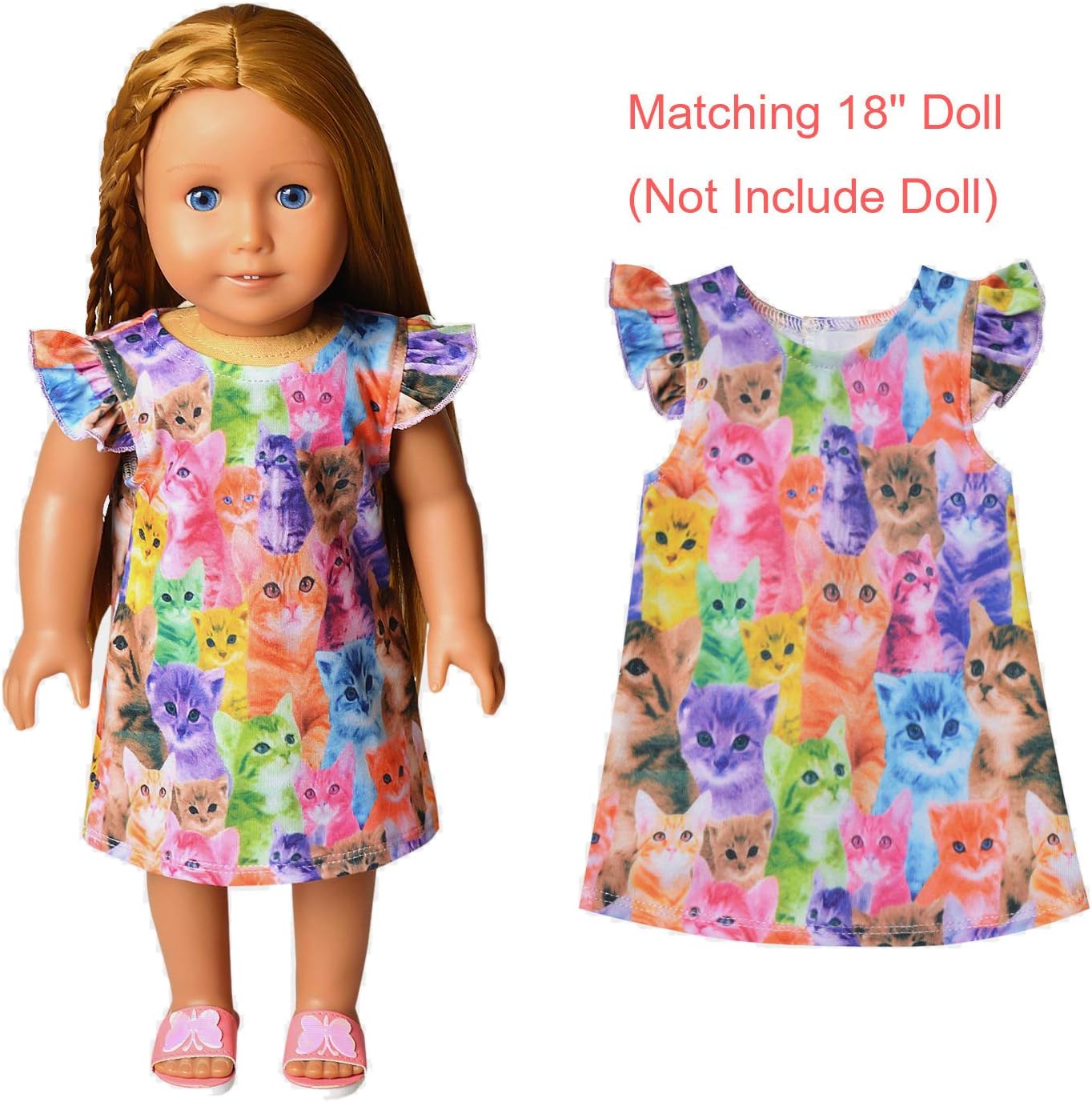 • Matching girls & dolls nightgowns fit almost 18" dolls and America Girl doll, flutter sleeve, loose fit, above-knee-length pajamas dress