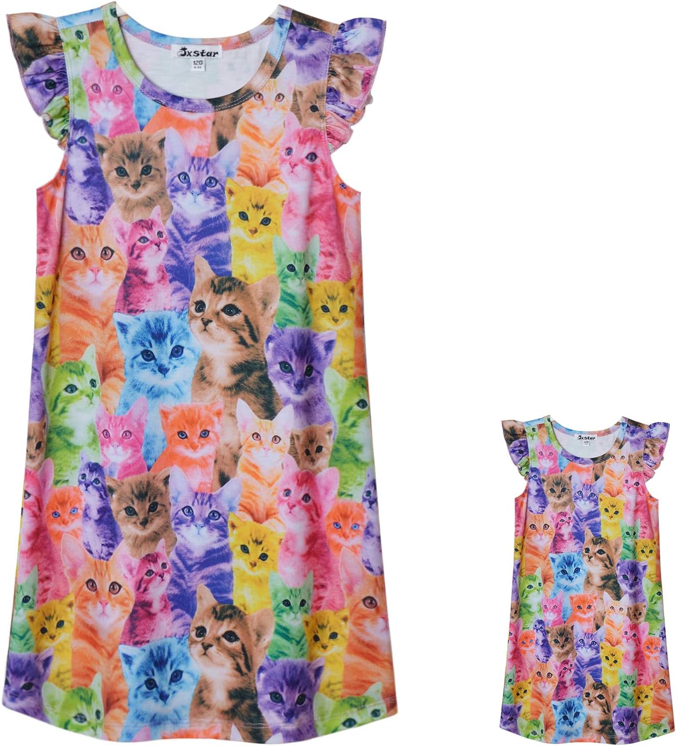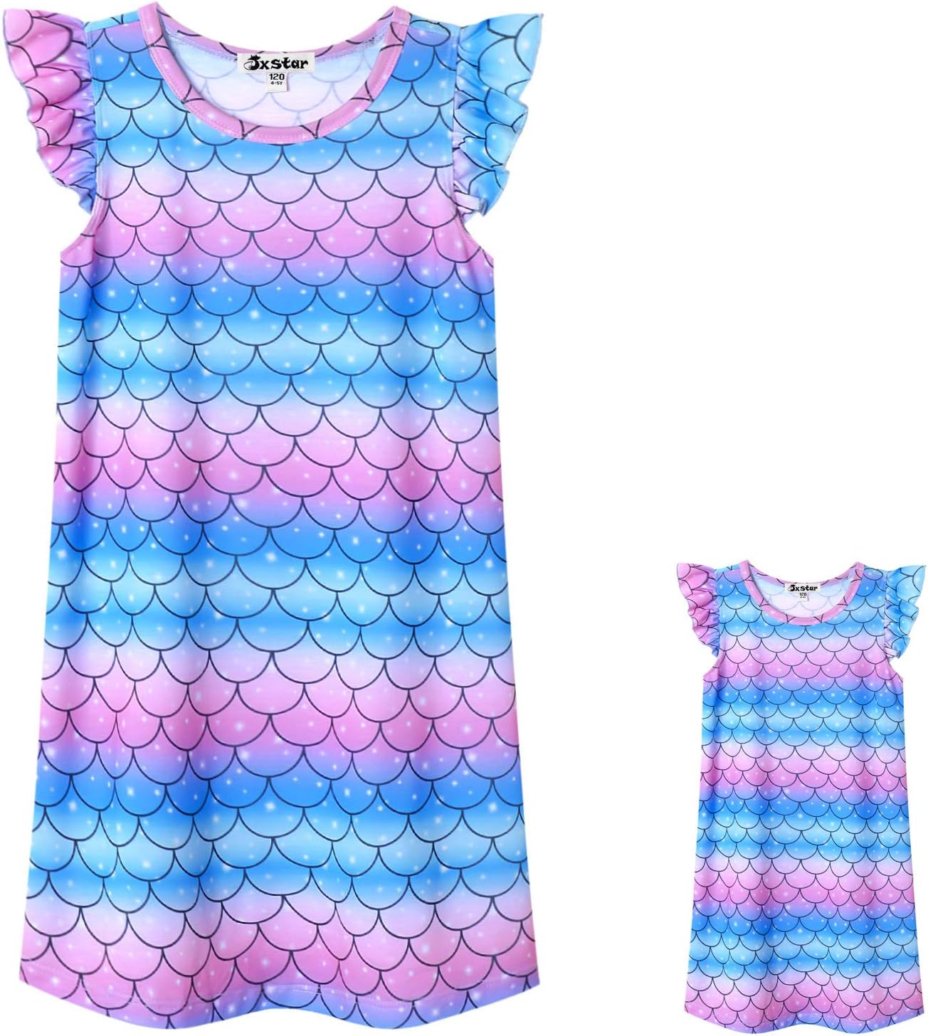 Jxstar Matching Girls&Doll Nightgowns Pajamas Princess Sleepwear Flutter Sleeve Night Dresses